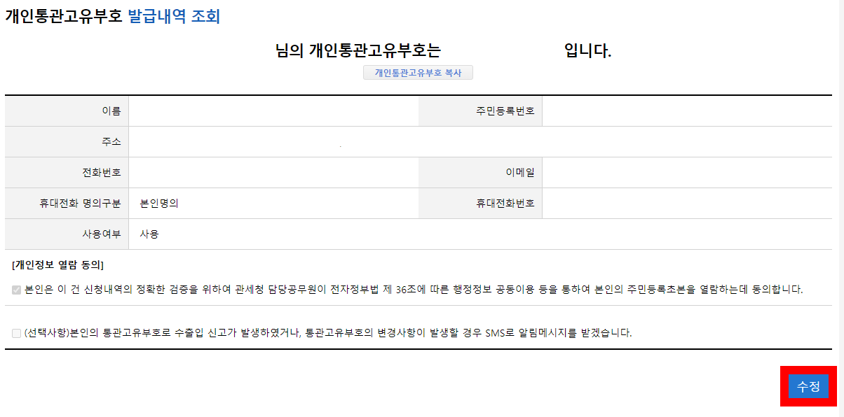 개인통관부호 변경 방법